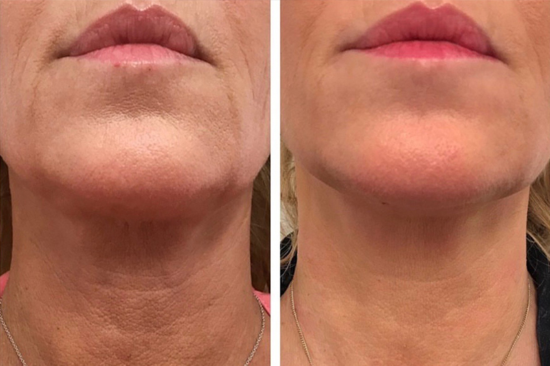 The calcium hydroxyapatite molecules in Radiesse then stimulate the body to build new collagen. This naturally firms and improves the area, adding volume to the sagging area and improving the skin texture over time.